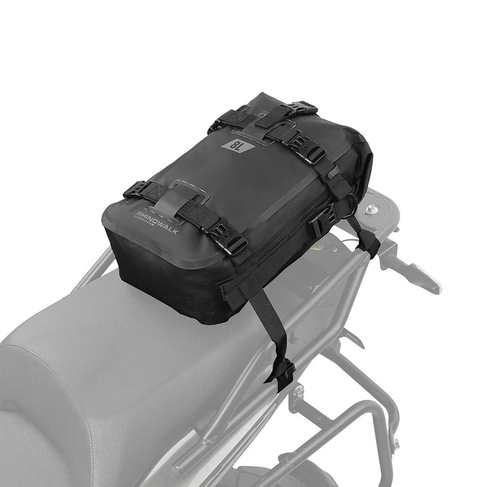 Rhinowalk Motorcycle Backpack 8L Waterproof Motorbike Seat Tail Bag for Adventure Welded Seamless Side Saddle Motopack (MT2208) - Black / 8L