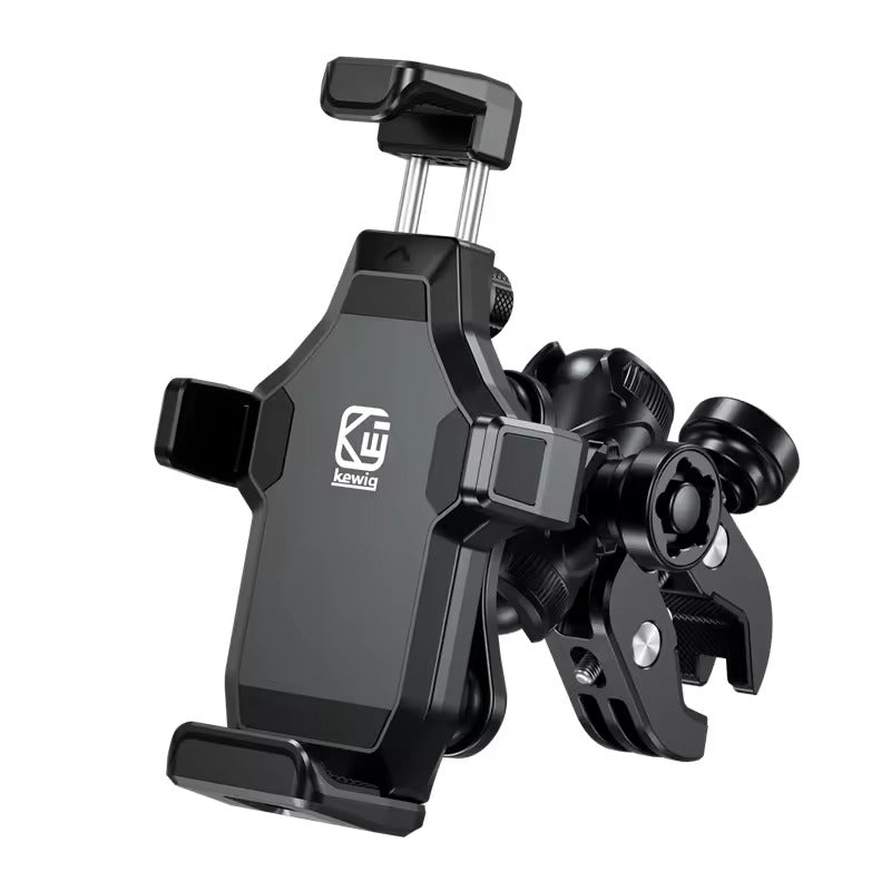 Kewig Motorcycle Mobile phone holder Fit the bar diameter:20mm-40mm Suitable phone size:4.5-7.2inch (M25-8) - Black / Aluminum +ABS