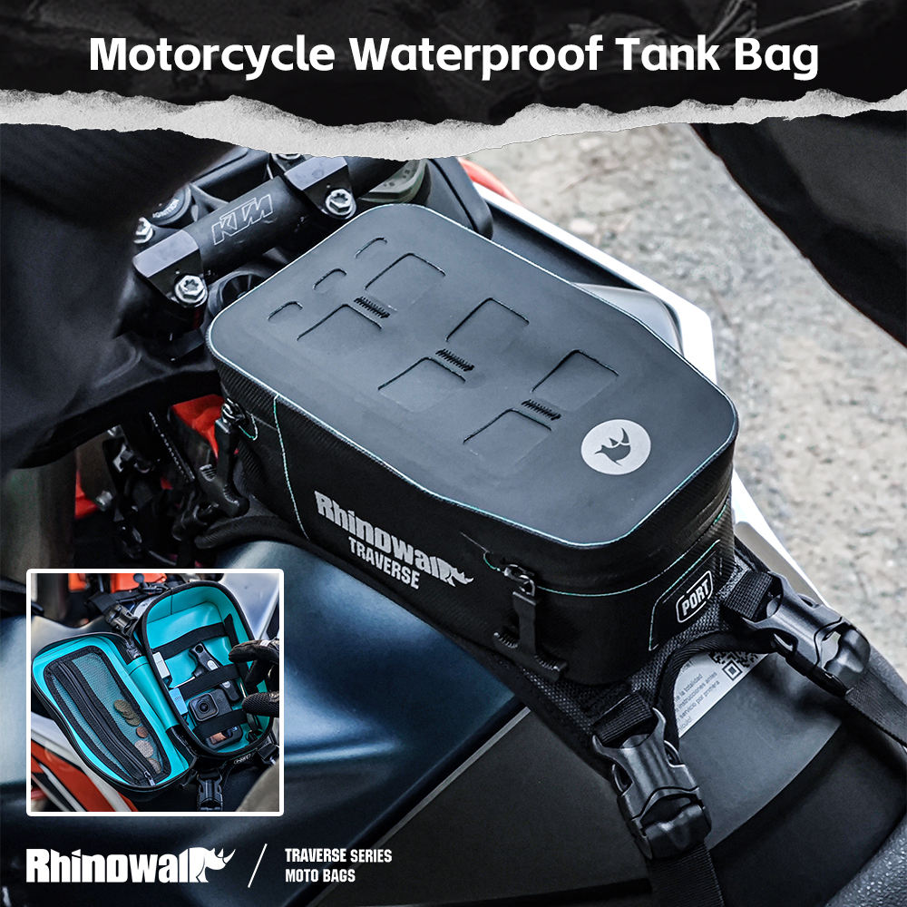 Rhinowalk 2L Compact Motorcycle Tank Bag Waterproof Motorbike Fuel Tank Storage Pack Durable TPU Material - Black