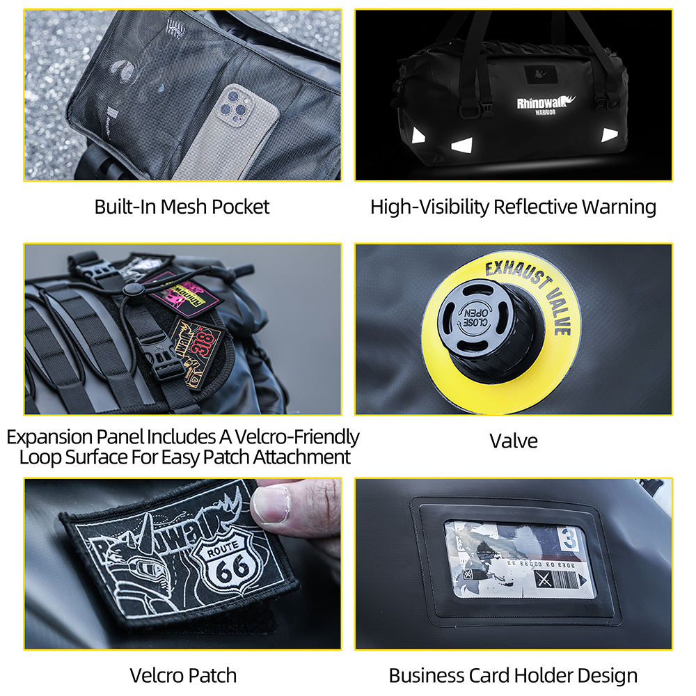Rhinowalk Warrior Series X 65L Waterproof Motorcycle Roll-Top Duffle Bag Heavy Duty Dry Pack Tail Rear Luggage for Adventure